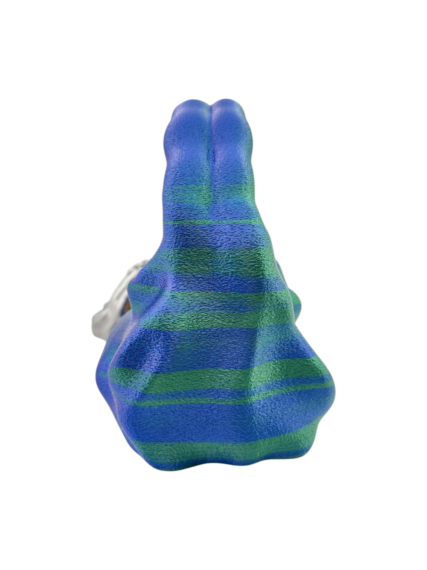 Cada bolso se imprime usando PLA, un material que no solo es amigable con el ambiente, sino que también se desintegra de forma responsable en composta industrial.