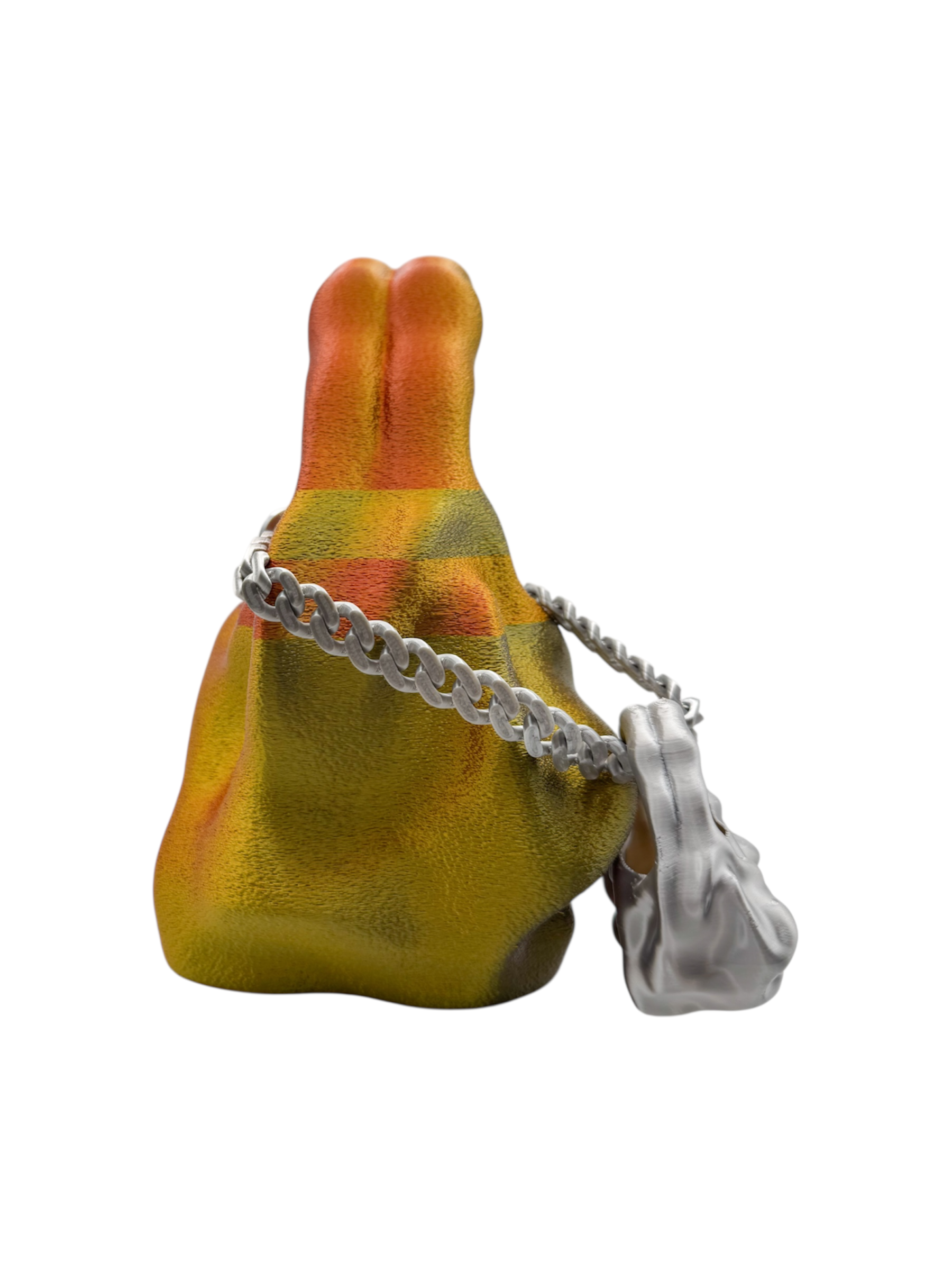 20 horas de arte, impreso en 3D por más de 20 horas con PLA biodegradable, derivado del maiz, cada curva de este bolso refleja el diseño the cosmic water de not too fancy.