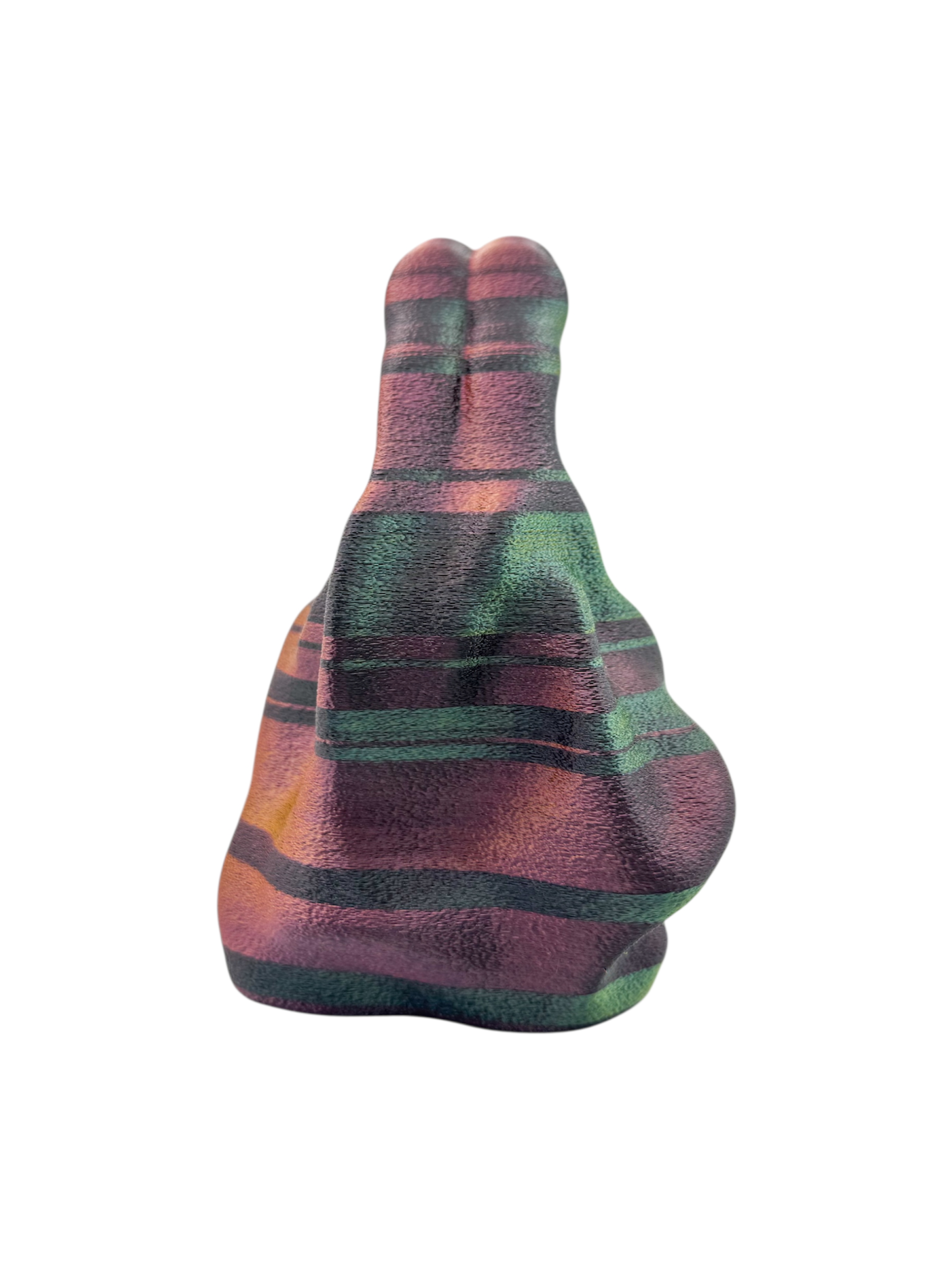 Cada bolso se imprime usando PLA, un material que no solo es amigable con el ambiente, sino que también se desintegra de forma responsable en composta industrial.