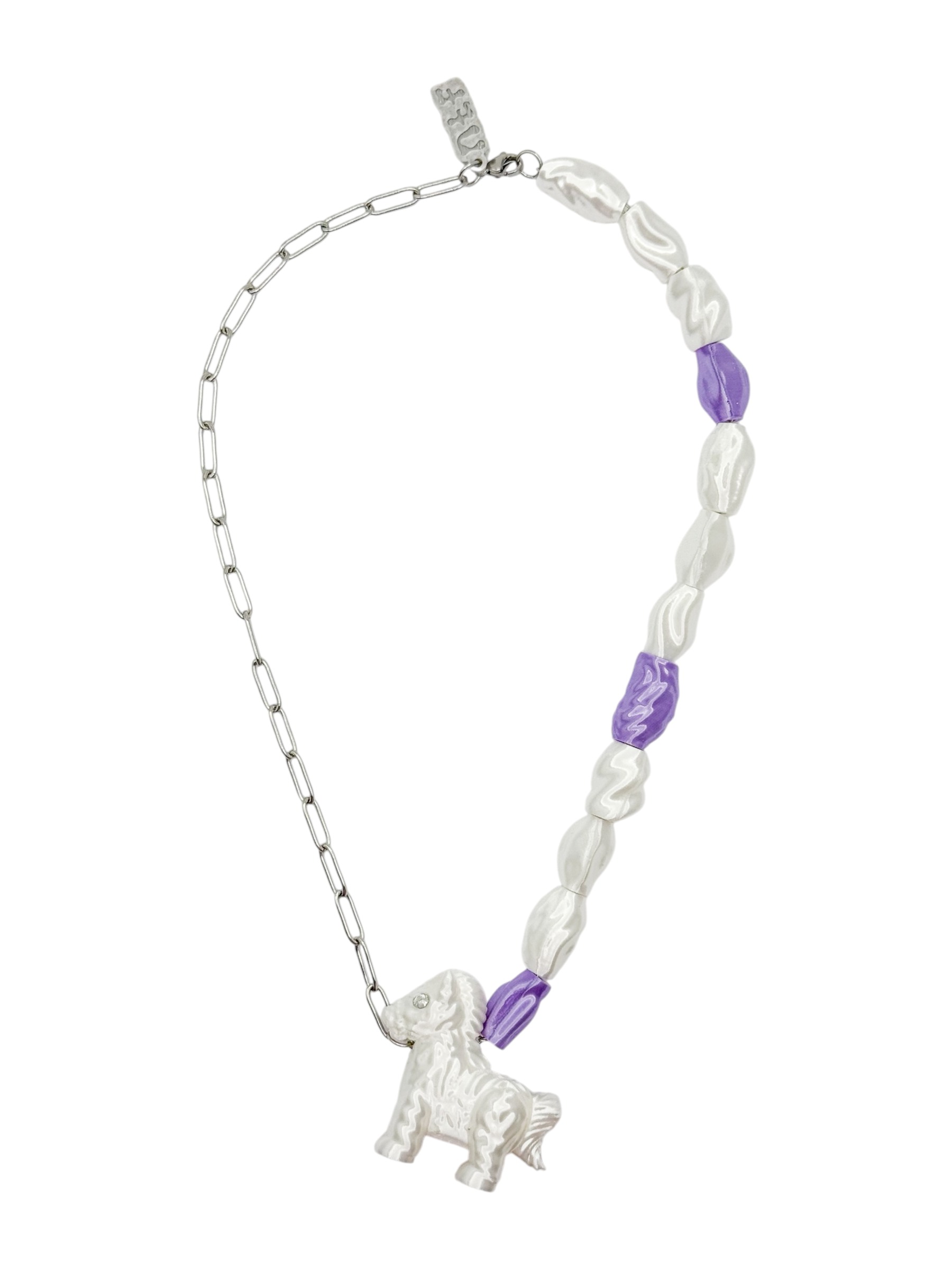 El caballo es de crema y cristales preciosos, la cadena es de acero inoxidable e impresión 3D en PLA, un material biodegradable. Adentro tiene un chip NFC que abre lo que tú quieras mostrarle a quien lo lleva: una dedicación, un link a tu Insta, tu canción favorita, una playlist de Spotify, un video de YouTube, la identificación de tu mascota, lo que sea, ¡tú decides!.