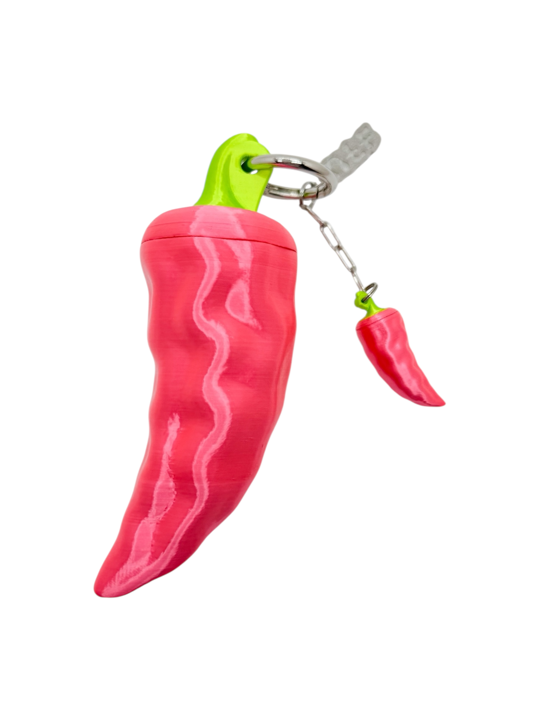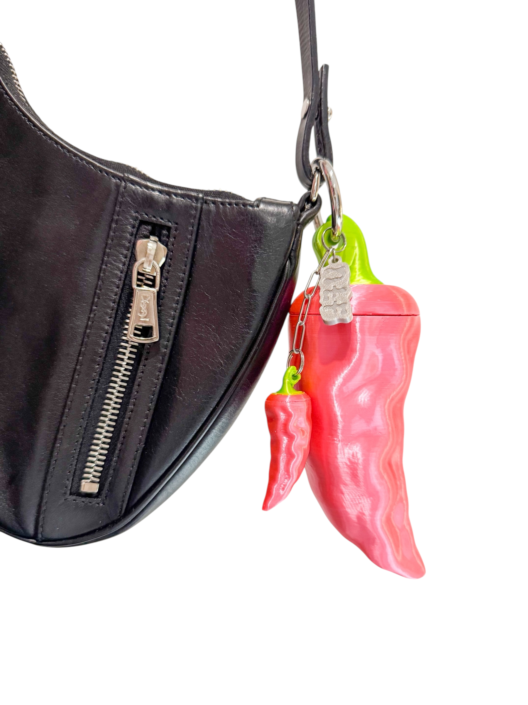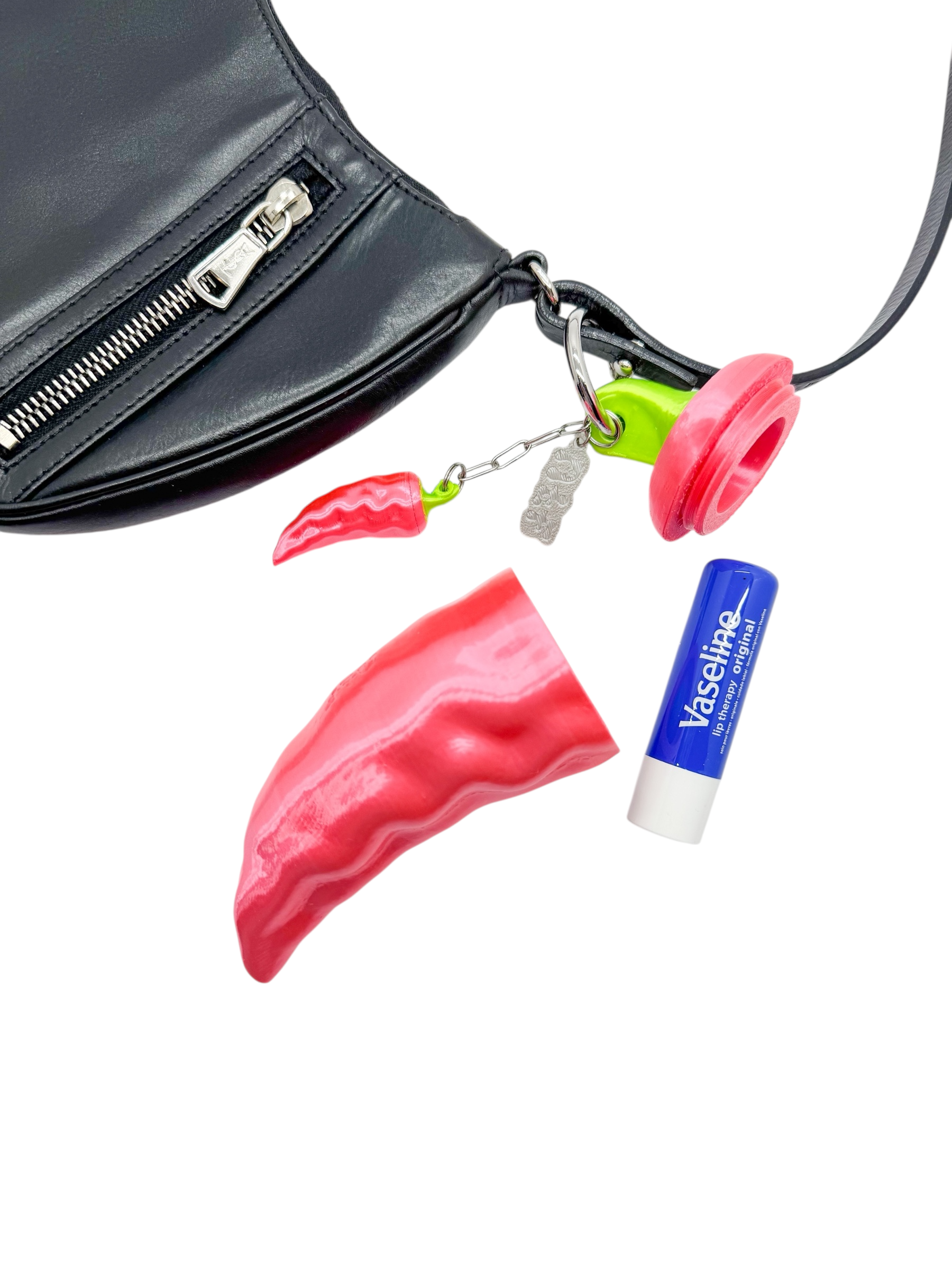 Un charm case de ají para tu lipstick, porque los besos picantes saben mejor, inspirado en las formas orgánicas, irregulares y en constante movimiento de not too fancy, impreso en 3D, con PLA, un bioplástico eco-friendly, derivado del maíz, biodegradable en composta industrial, que marca tu estilo.