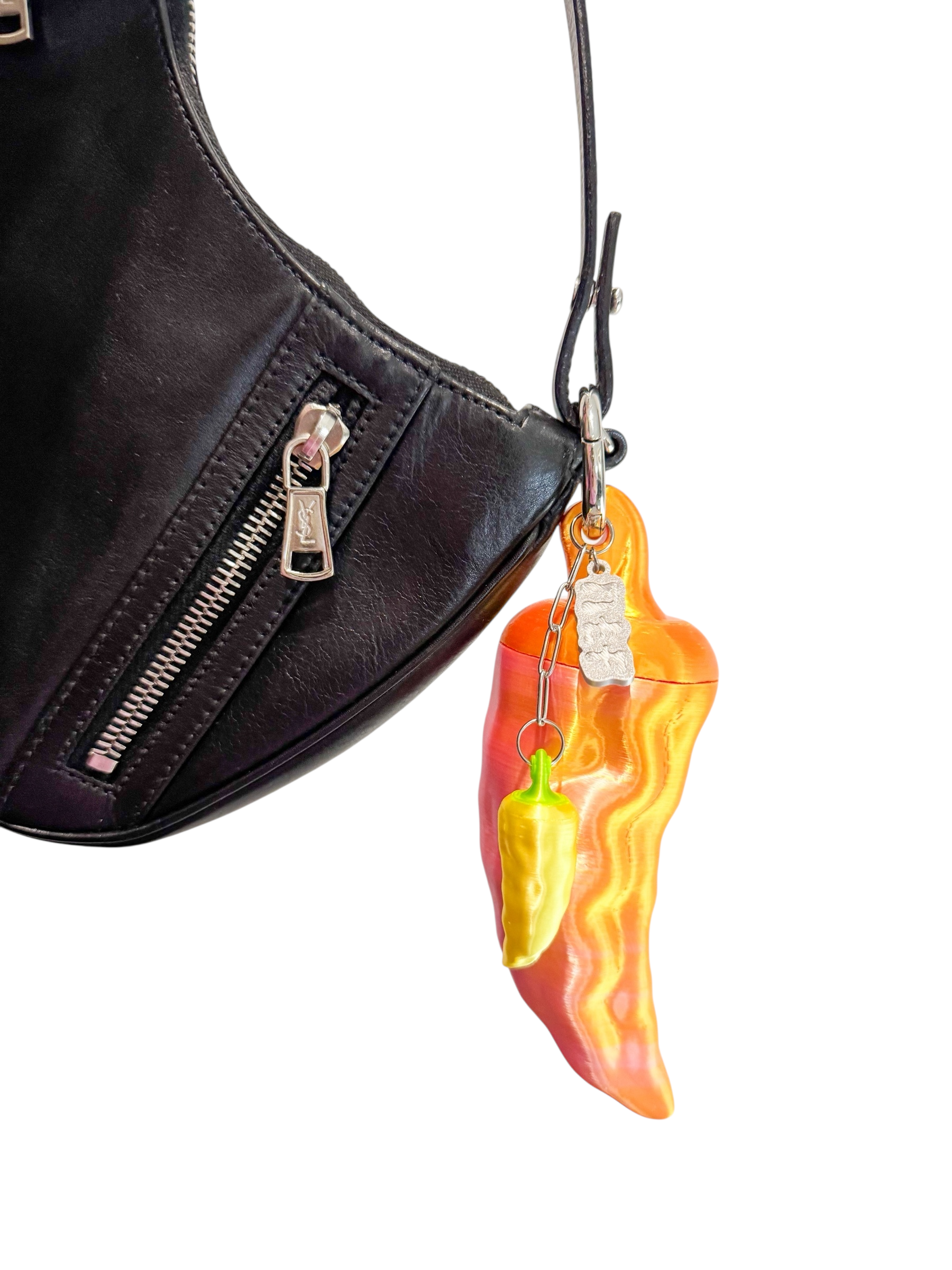 Un charm case de ají para tu lipstick, porque los besos picantes saben mejor, inspirado en las formas orgánicas, irregulares y en constante movimiento de not too fancy, impreso en 3D, con PLA, un bioplástico eco-friendly, derivado del maíz, biodegradable en composta industrial, que marca tu estilo.