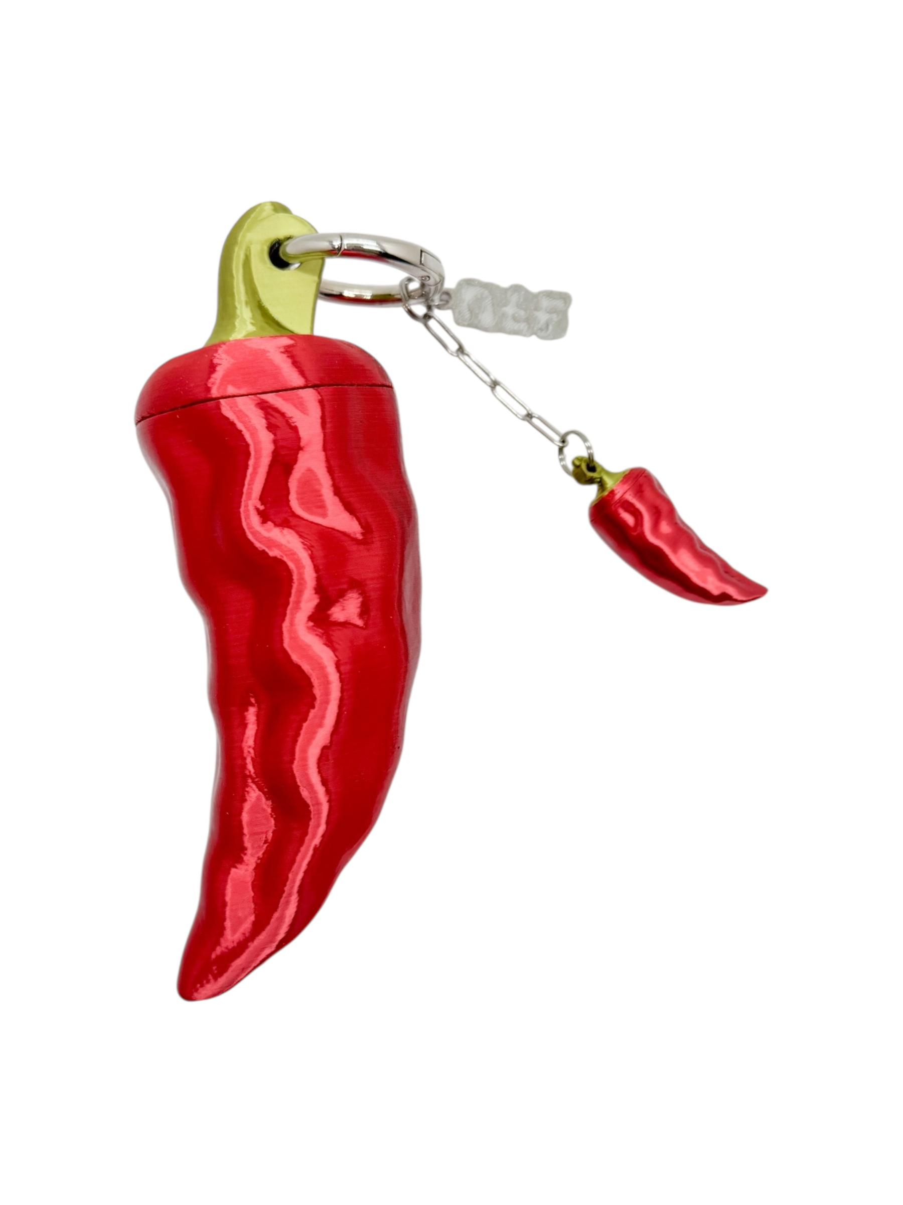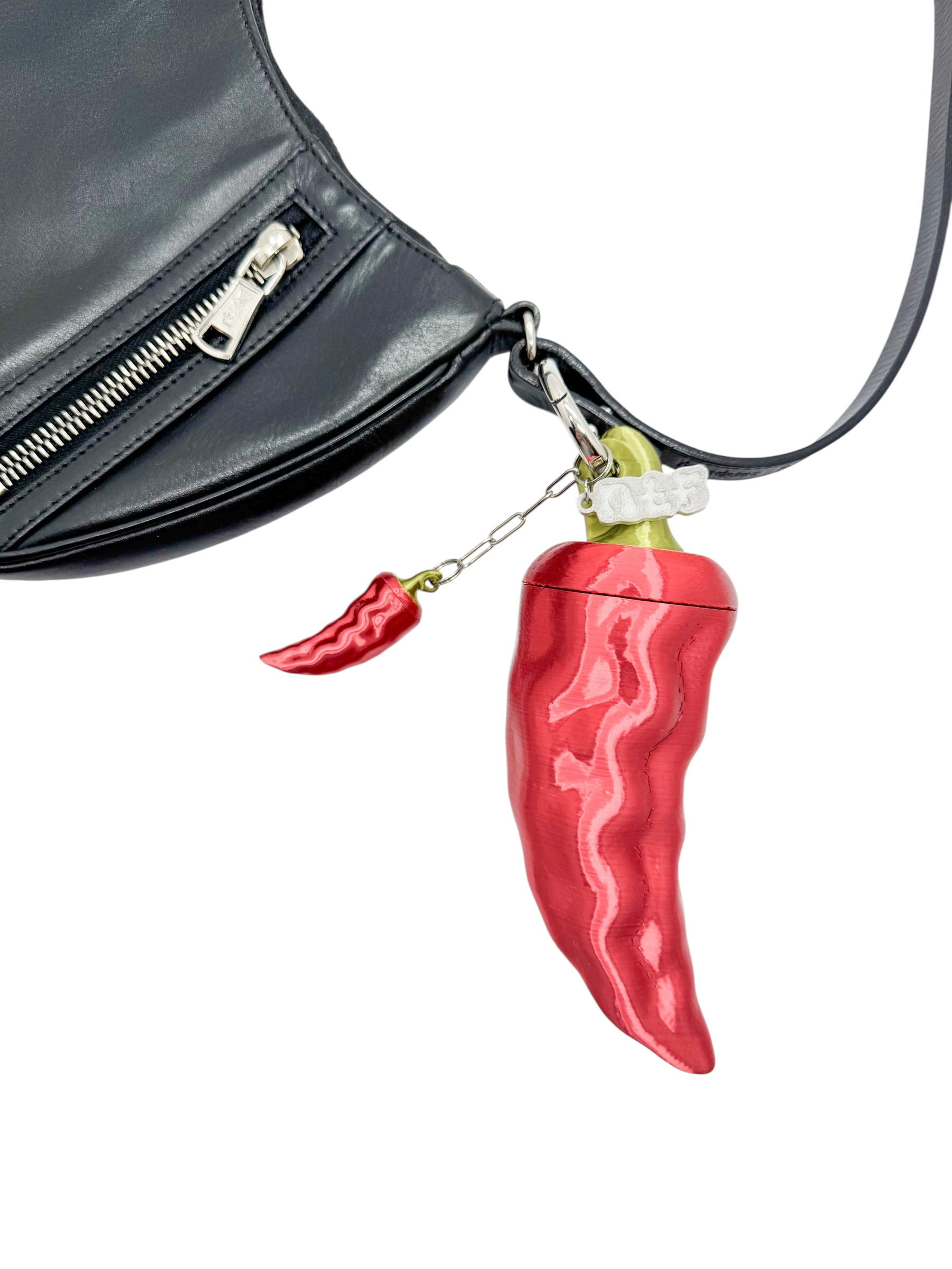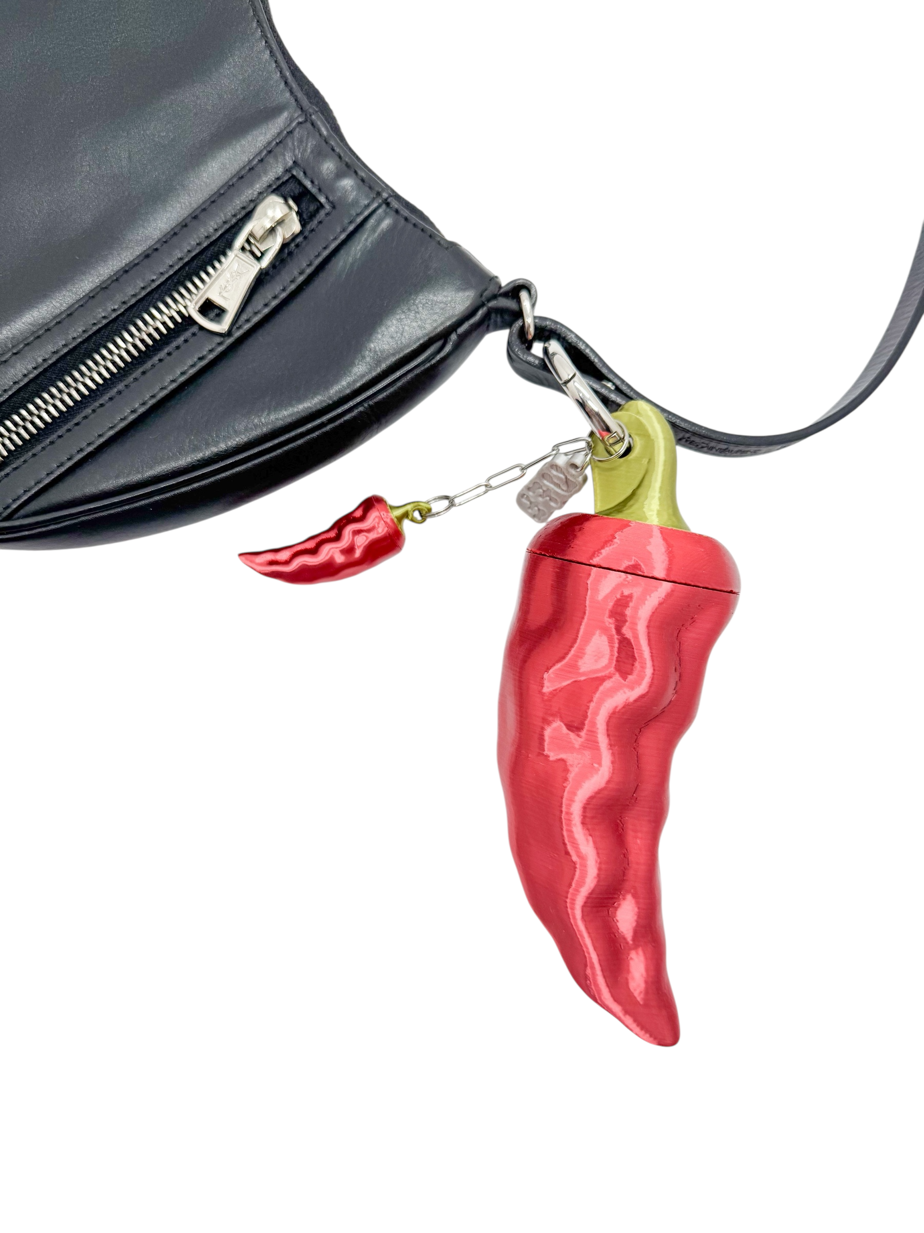 Un charm case de ají para tu lipstick, porque los besos picantes saben mejor, inspirado en las formas orgánicas, irregulares y en constante movimiento de not too fancy, impreso en 3D, con PLA, un bioplástico eco-friendly, derivado del maíz, biodegradable en composta industrial, que marca tu estilo.