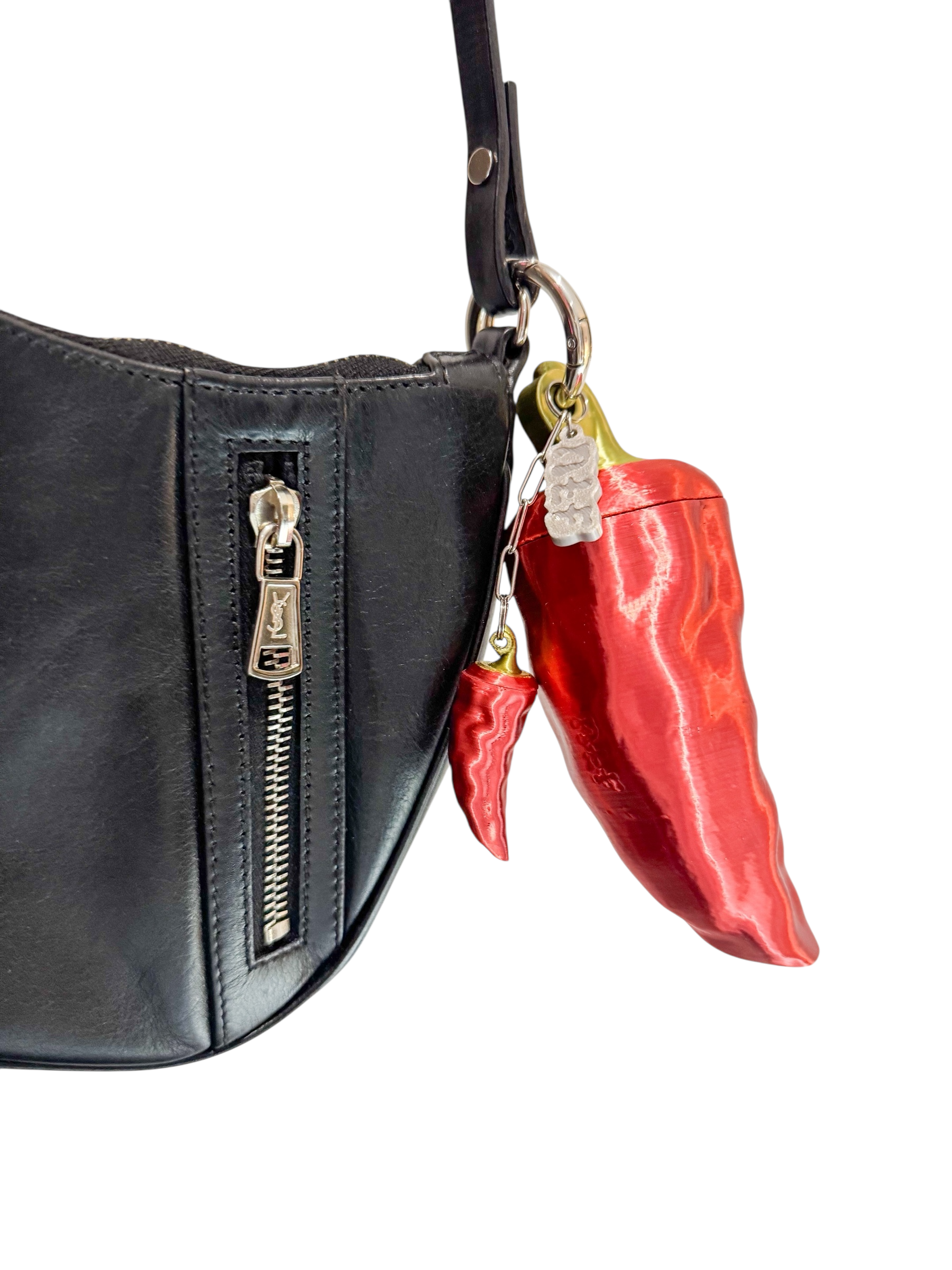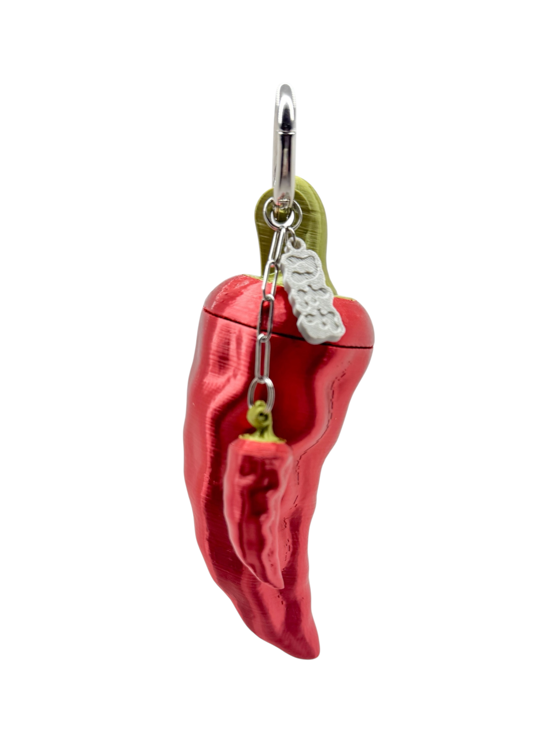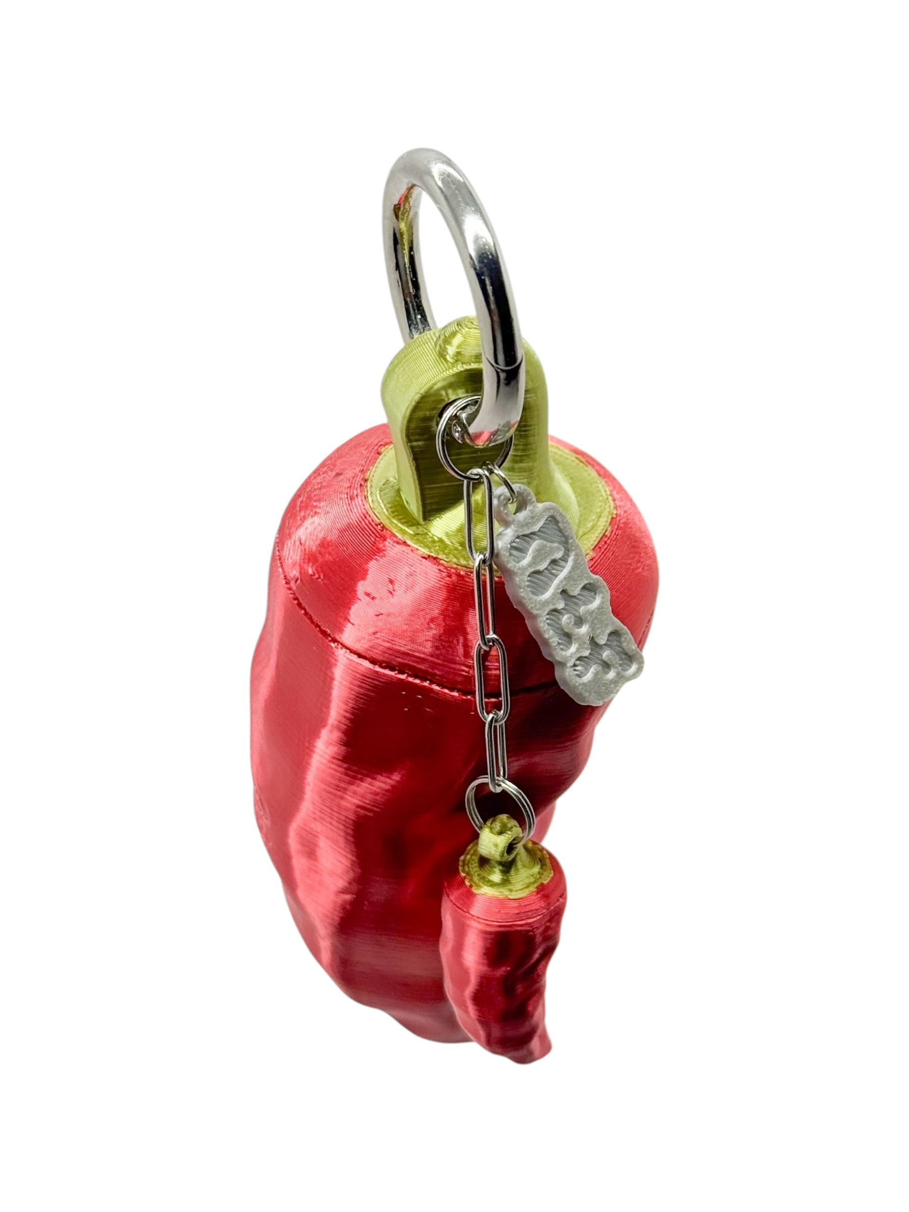 Un charm case de ají para tu lipstick, porque los besos picantes saben mejor, inspirado en las formas orgánicas, irregulares y en constante movimiento de not too fancy, impreso en 3D, con PLA, un bioplástico eco-friendly, derivado del maíz, biodegradable en composta industrial, que marca tu estilo.