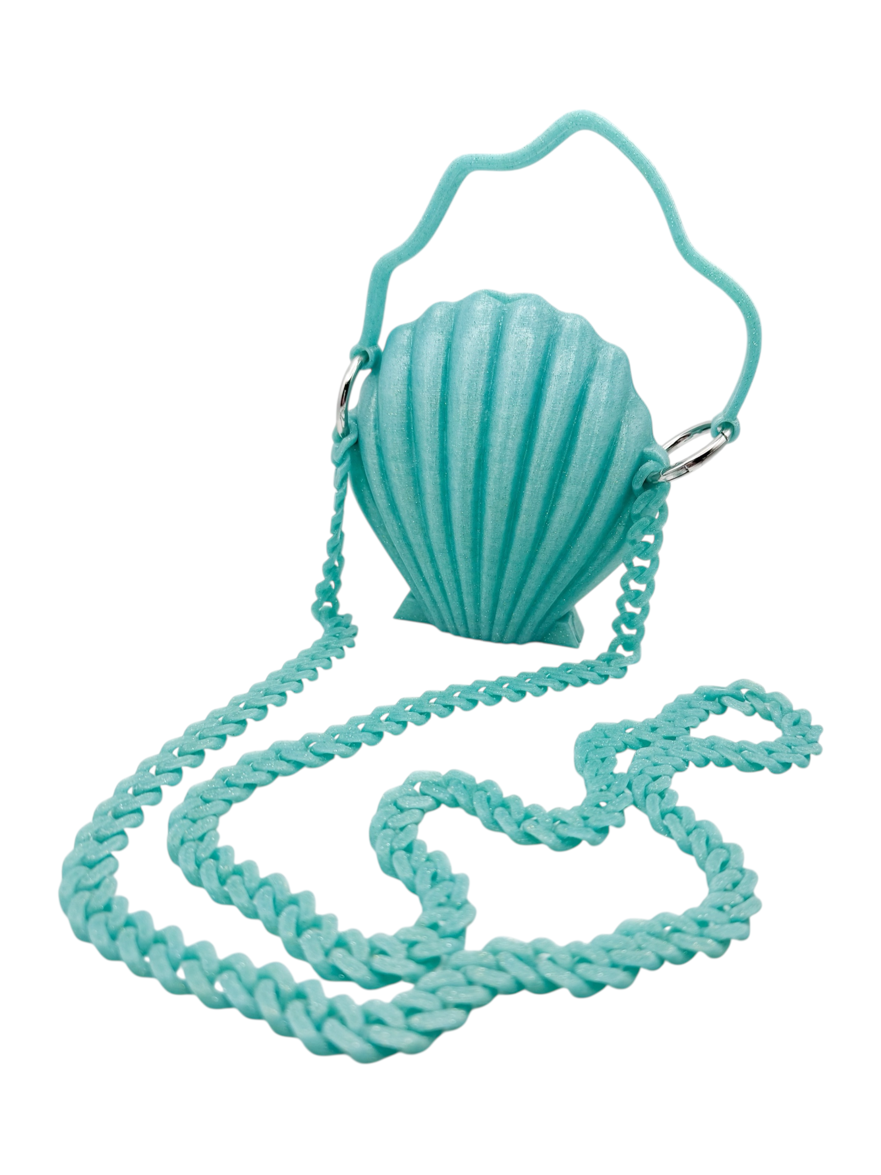 ¿Un bolso concha? No. Es un statement de 10 horas de impresión en 3D, con PLA (bioplástico hecho de maíz, reciclable y eco-friendly), para los que no tienen miedo a ser diferentes. Con su diseño de concha, incluye asa y cadena, este bolso es el must-have para llevar tu outfit de lo básico a lo cool.